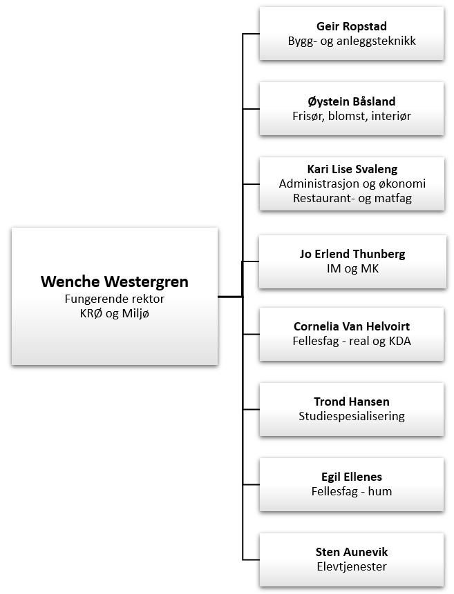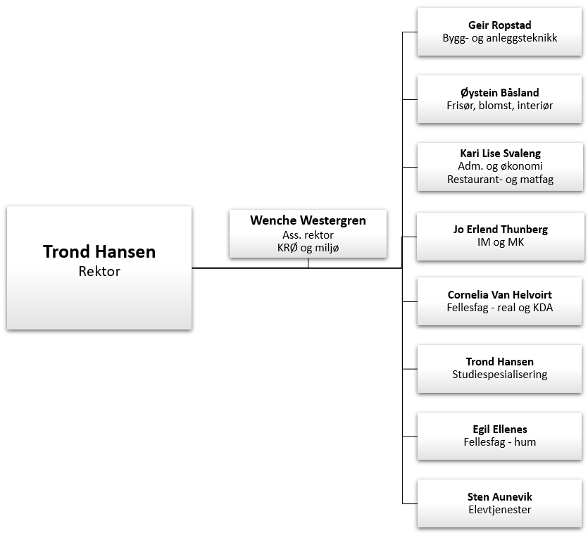 Rektors team har likevel daglig fokus på blant annet at du, som elev ved skolen vår, skal få en oppfølging som danner grunnlag for trivsel og læring i skolehverdagen din. Både i hverdagen på skolen, og om vanskelige situasjoner skulle oppstå på skolen eller privat.